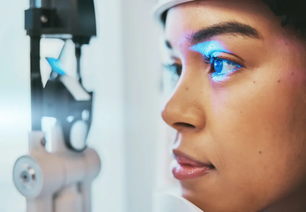 - Examen visuel du fond de l’œil à l’aide d’un ophtalmoscope pour vérifier l’état du nerf optique